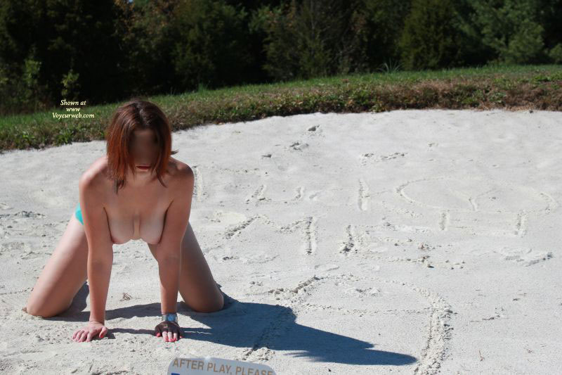 My wife and I decided to go golfing one beautiful afternoon on a local golf course but just after a few holes we decided to make it more exciting and she took off her clothes. Fortunately balls of none of the guys in the group ahead of us and behind us strayed off-course and they didn't see my wife totally naked showing off her shaved pussy and natural tits to the world. We hope...